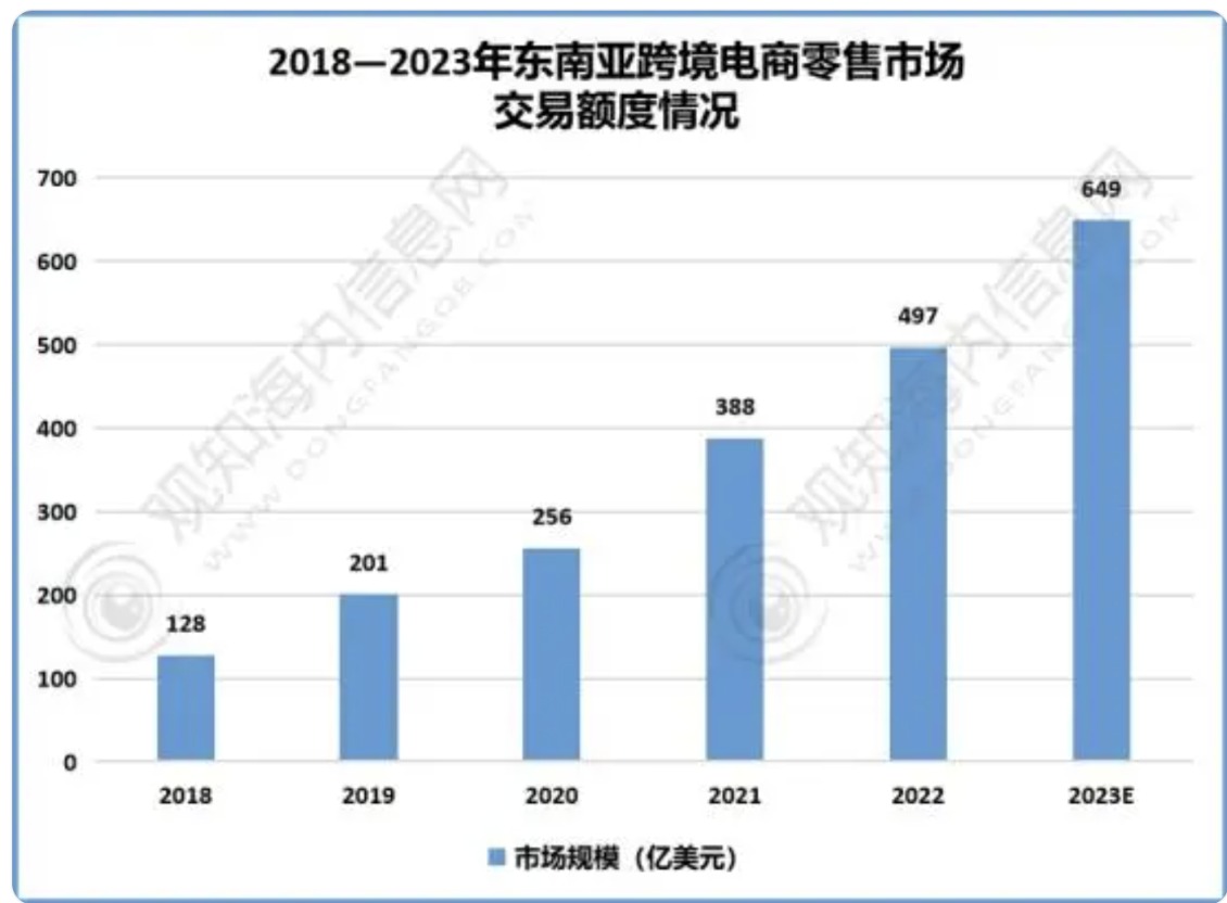 2018—2023年东南亚跨境电商零售市场交易额度情况资料来源:沙利文、观知海内咨询整理