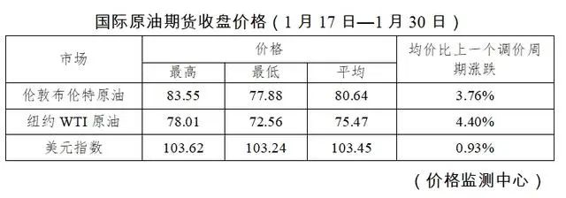 国家发展改革委价格监测中心数据显示,本轮调价周期伦敦布伦特、纽约WTI油价分别比上个调价周期上涨3.76%、4.40%。